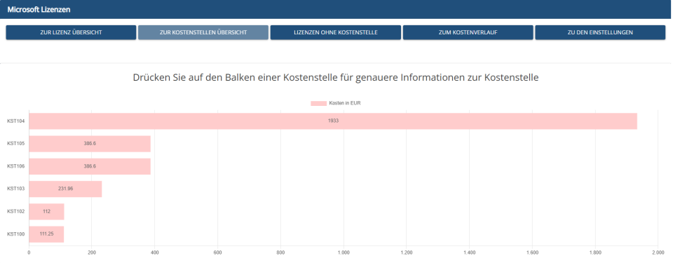 Lizenzkosten lassen sich direkt Kostenstellen zuordnen, beispielsweise: