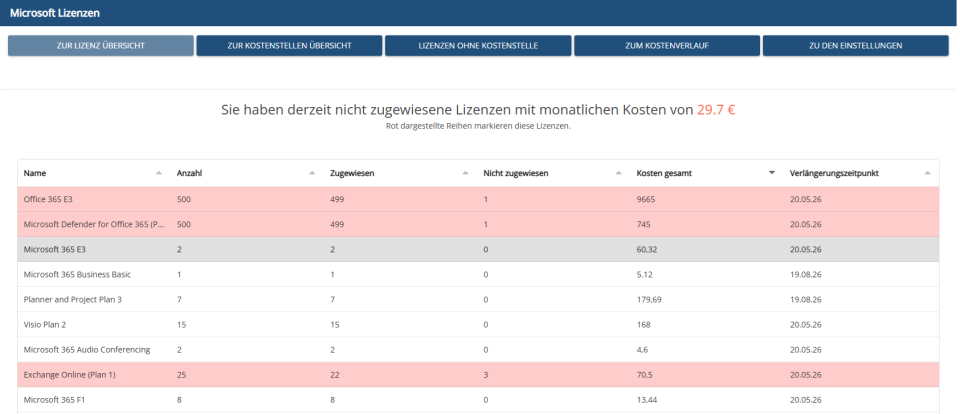 Unser System erkennt und zeigt nicht zugewiesene oder ungenutzte Lizenzen sofort an. Dadurch können Unternehmen: